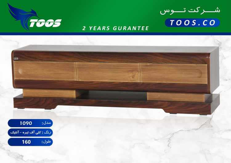 میز تلوزیون مدل 1090 سایز 160 سانت ( روکش بدنه کلیاف تیره/ درب ها آنتیک )